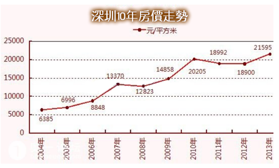 圖 1:深圳 10 年房價走勢(價格單位:人民幣)